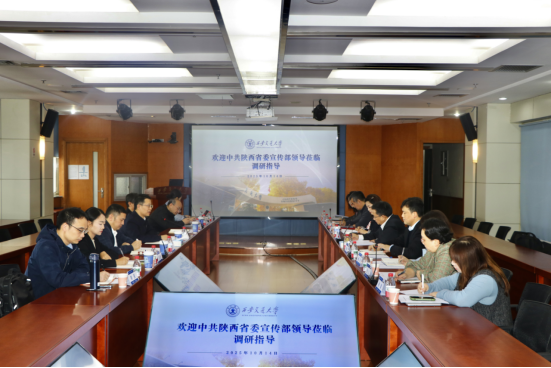 10月14日,省委宣传部副部长单舒平一行到访西安交通大学新闻与新媒体学院,围绕国际传播相关工作开展调研座谈。省委宣传部外宣处处长王战军、三级调研员庞仕平,陕西国际传播中心主任王冬,西安交大新闻与新媒体学院党委书记薛周利、党委宣传部副部长刘昱含、新闻与新媒体学院领军学者阚平、陈红兵等同志参加座谈。西安交大新闻与新媒体学院院长汪文斌主持座谈。