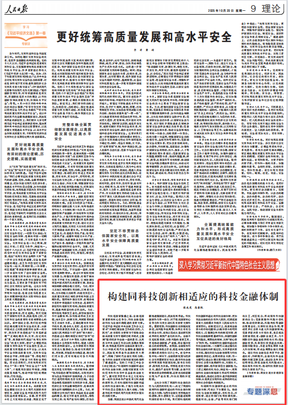 当前,我国正在以中国式现代化全面推进强国建设、民族复兴伟业。科技创新作为第一动力,对于提高国家核心竞争力和发展主动权具有重要支撑作用。需要看到,科技创新往往伴随高复杂度、高风险和长周期,如果没有有力的资金支持,就难以完成从基础研究到成果转化再到产业化的跃升。金融不仅是配置资源、分散风险的重要工具,更是推动创新链、产业链、资金链深度融合的重要纽带。在我国,金融服务科技创新并非孤立存在,而是被纳入国家治理体系的整体设计之中。在党中央集中统一领导下,金融资源配置与经济社会发展需要紧密结合,确保科技金融始终聚焦服务国家战略、服务实体经济、服务民生改善。特别是在重大科技攻关、前沿产业培育等方面,金融不仅要解决资金供给问题,还要在战略层面实现与产业政策、科技政策的深度衔接。