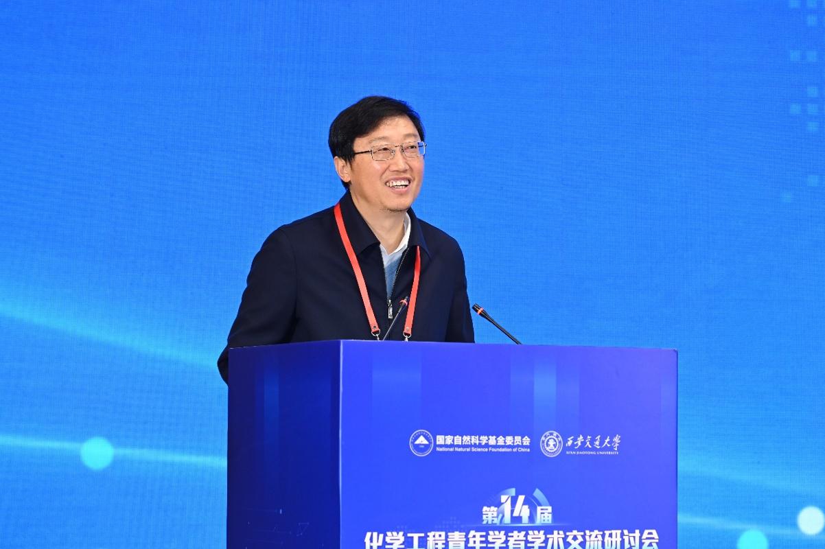 张立群向会议的成功召开表示祝贺,向与会嘉宾表示欢迎,向国家自然科学基金委及各界朋友长期以来对西安交大的关心与支持表示感谢。他指出,化学工程是现代工业的基石,青年学者是科技创新的生力军。西安交大对承办本届研讨会倍感荣幸,期待会议为洞察化工学科前沿动态、助力青年学者成长成才构筑更为坚实的平台。 他表示,西安交大始终传承弘扬西迁精神,在人才培养、科学研究、社会服务、国际交流合作、产教融合等方面持续奋斗,并着力推进产学研深度融合,积极服务国家发展大局。近年来,学校化学工程与技术学科面向国际科技前沿与国民经济主战场,在能源化工、高端化学品与材料等方向形成了一定特色和优势,位列US News世界大学学科排名全球十强。他相信,在各位专家的悉心指导与全体青年学者的热情参与下,本次研讨会必将取得丰硕成果,为我国化学工程事业的繁荣发展注入新的活力、谱写新的篇章。