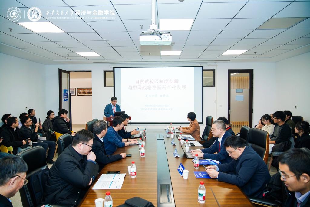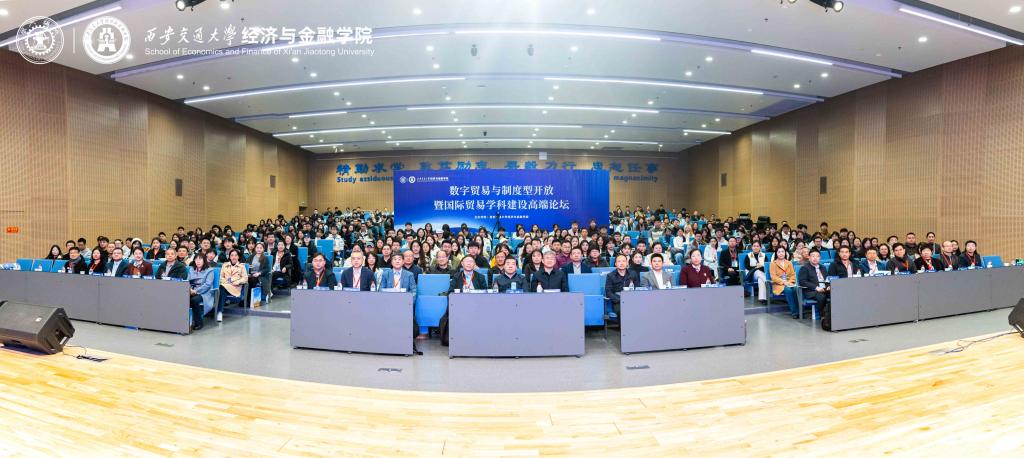 11月8日,由西安交通大学经济与金融学院主办的“数字贸易与制度型开放暨国际贸易学科建设高端论坛”在中国西部科技创新港举行。论坛汇聚了来自南开大学、复旦大学、浙江大学、中国人民大学、山东大学、厦门大学、中央财经大学、湖南大学、中南财经政法大学、新疆大学、郑州大学等40余所高校的知名学者,商务部驻西安特派员办事处、陕西电子口岸有限责任公司、西安自贸港建设运营有限公司、中译语通科技(陕西)有限公司、中煤西安设计工程有限责任公司等企事业单位负责人,西安交通大学党委副书记孙早、经济与金融学院师生近400人参加。活动由社会科学处处长梅红主持。