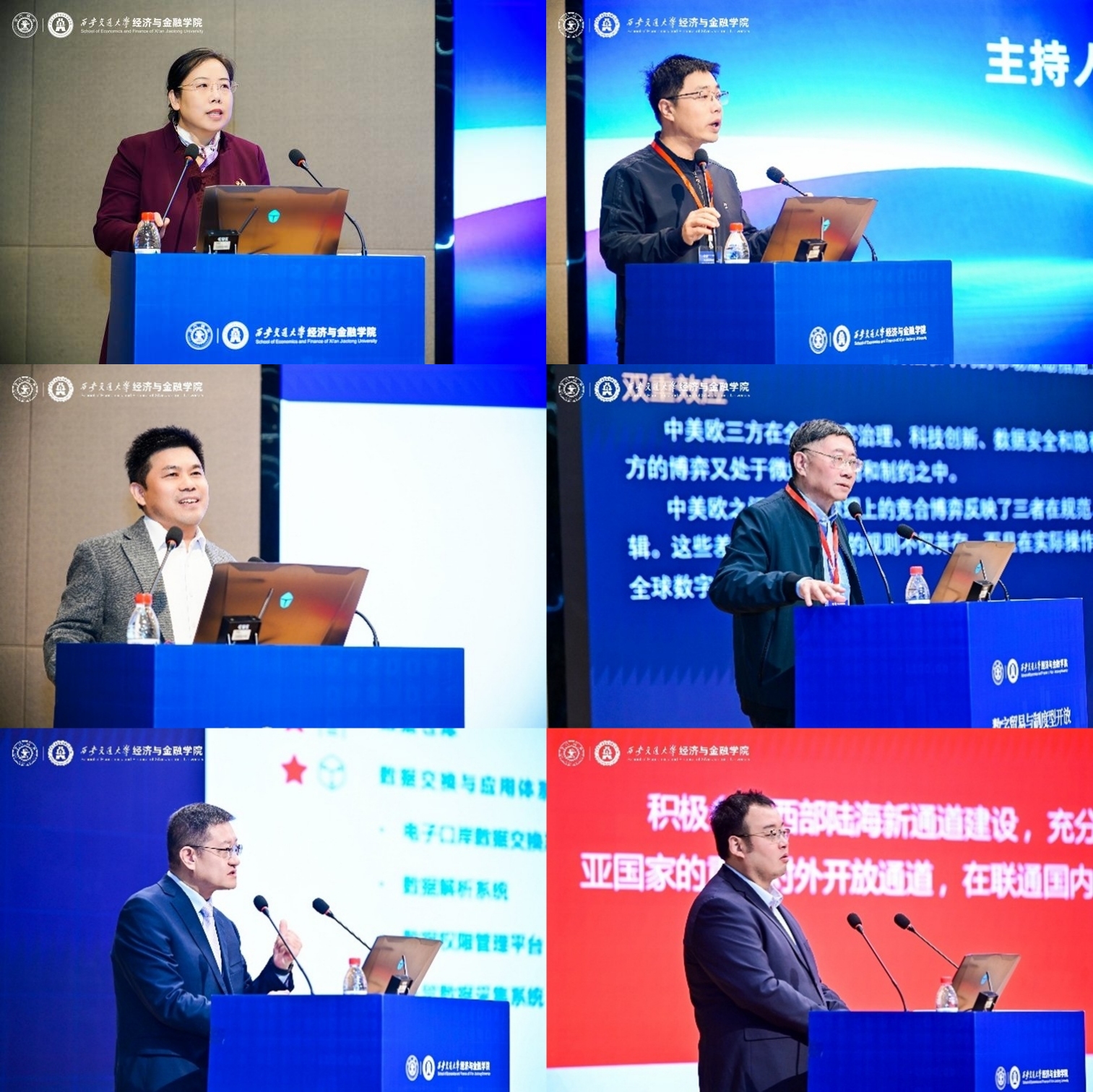 本次论坛共设有五场主旨报告、两场圆桌对话和两场平行论坛。五场报告贯通学理研究与实践前沿,系统呈现数字贸易与制度型开放领域的最新探索。南开大学副校长、经济学院院长盛斌教授阐释数字技术与国际贸易的双向赋能机制;厦门大学出版社社长彭水军教授解析了数字鸿沟与企业供应链中断的关系;西安交通大学冯宗宪教授介绍了“布鲁塞尔效应”,解构数字贸易新规则;陕西电子口岸有限责任公司董事长刘国强重点介绍陕西“单一窗口”在智慧云报关等方面的特色功能与开放成效;西安自贸港建设运营有限公司副总经理张奇韬则以中欧班列(西安)集结中心为例,分享西安在拓展亚欧网络、推动数智化运营方面的实践经验。该论坛由西安交大经济与金融学院副院长沈灏教授主持。