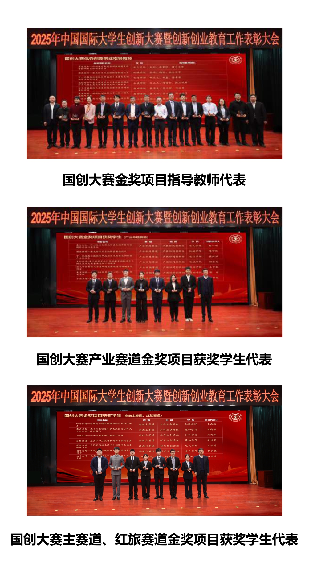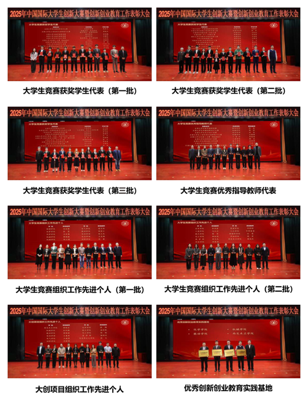 大会宣读了中国国际大学生创新大赛、创新创业实践教育基地、大学生竞赛、大学生创新训练计划获奖情况,并为获奖集体和个人颁奖。