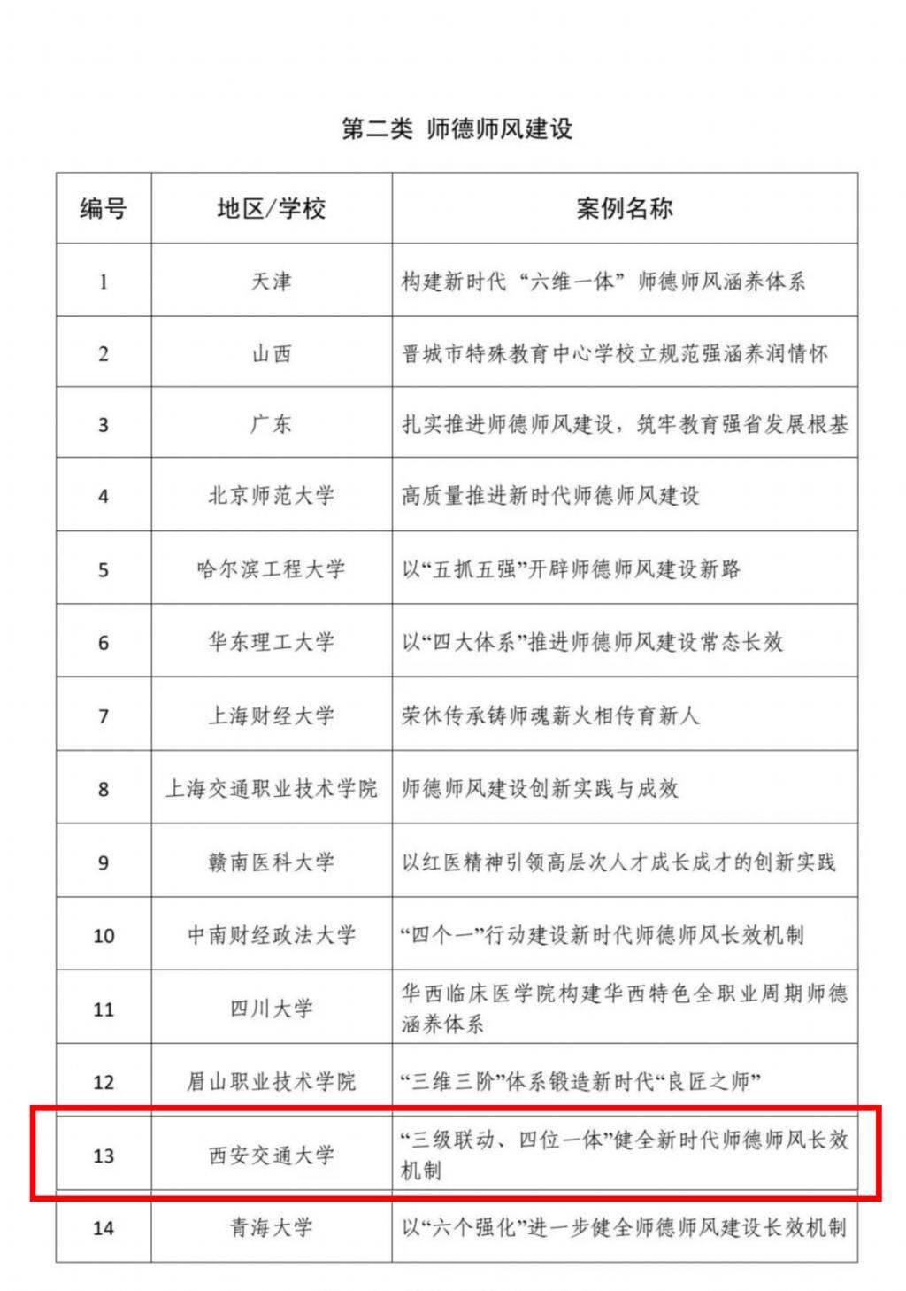 长期以来,西安交通大学坚持将党的领导贯穿师德师风建设始终,创新构建“学校党委—二级单位党组织—教师党支部”三级联动工作机制,系统推进“教育引导、考核评价、监督约束、激励保障”四位一体建设,推动师德建设系统化、常态化。