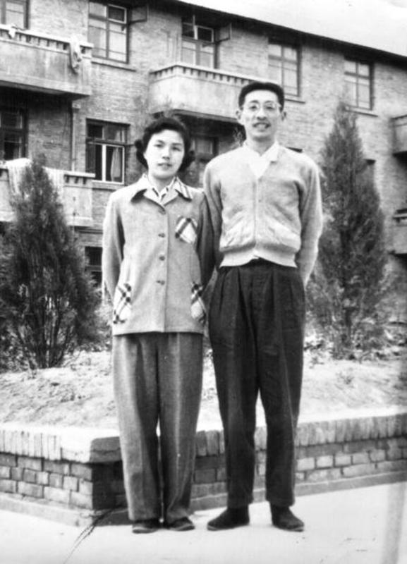 1958年西迁后蒋大宗夫妇在西安宿舍楼后合影
