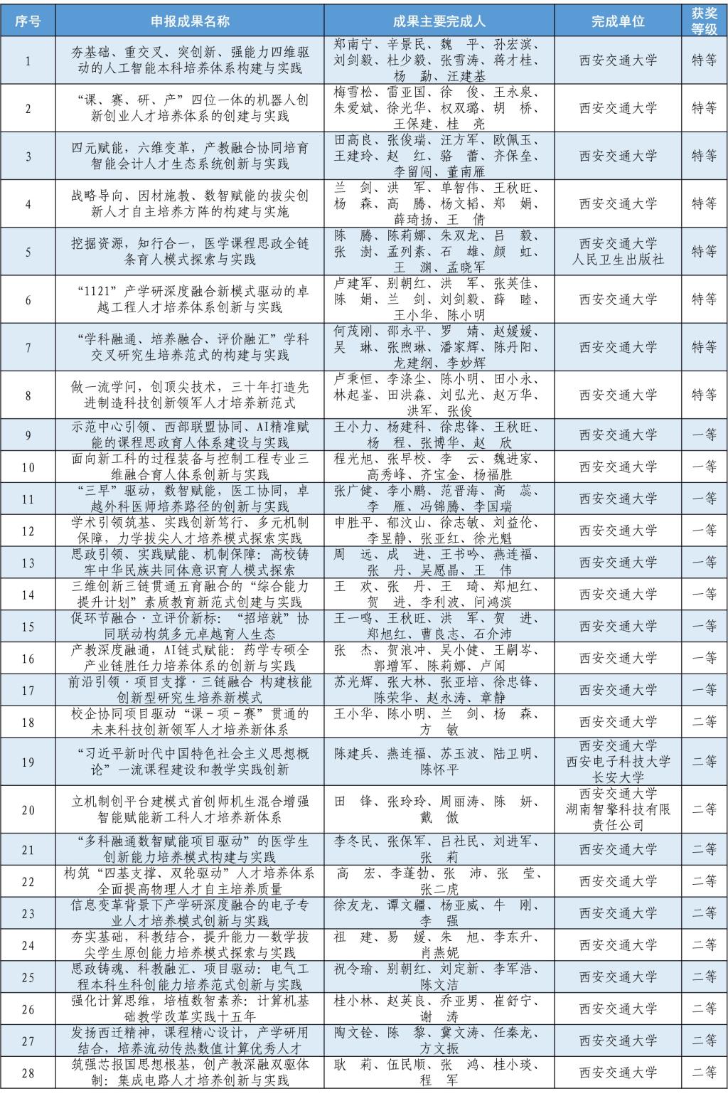 2025年陕西省高等教育教学成果奖西安交通大学获奖名单