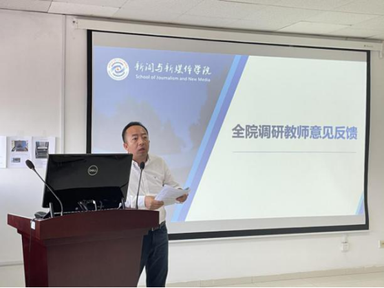 9月11日开学第一天,新媒体学院召开新学期全院教职工大会,集中反馈上半年学院教师调研意见,安排布置近期重点工作。学院党总支书记兼院长李明德主持会议。