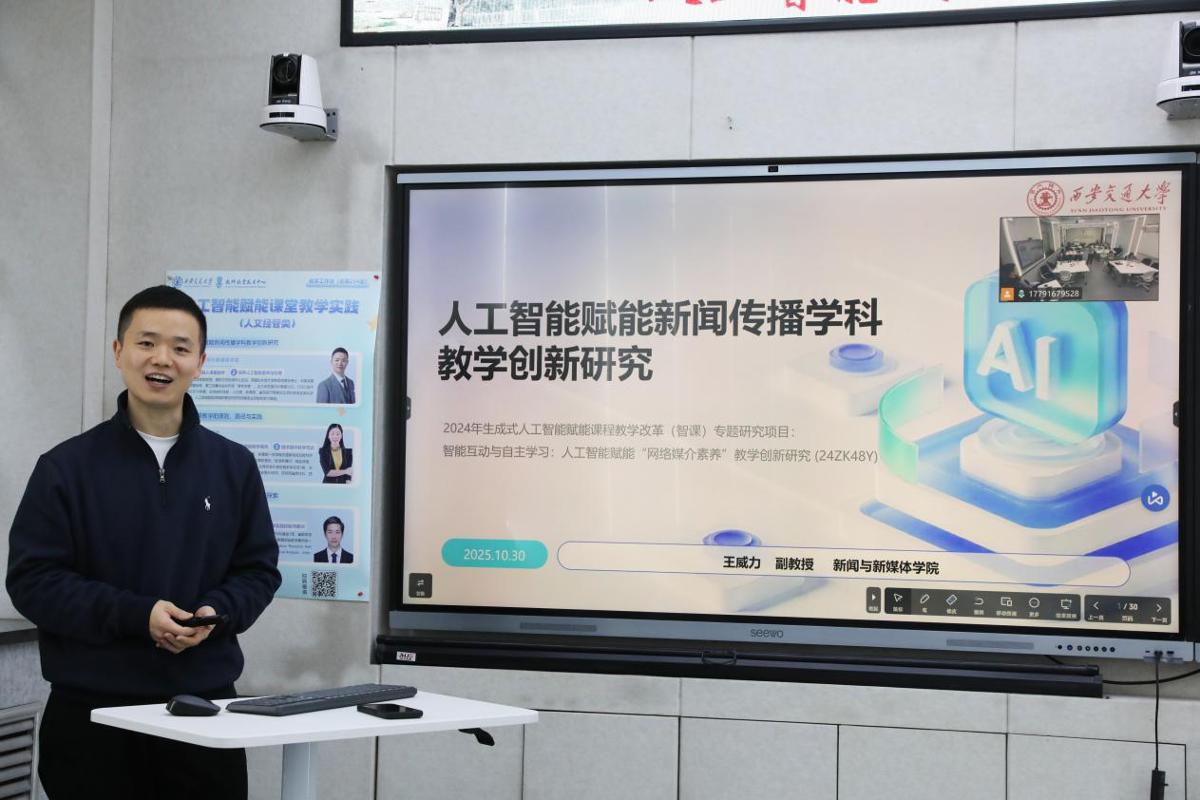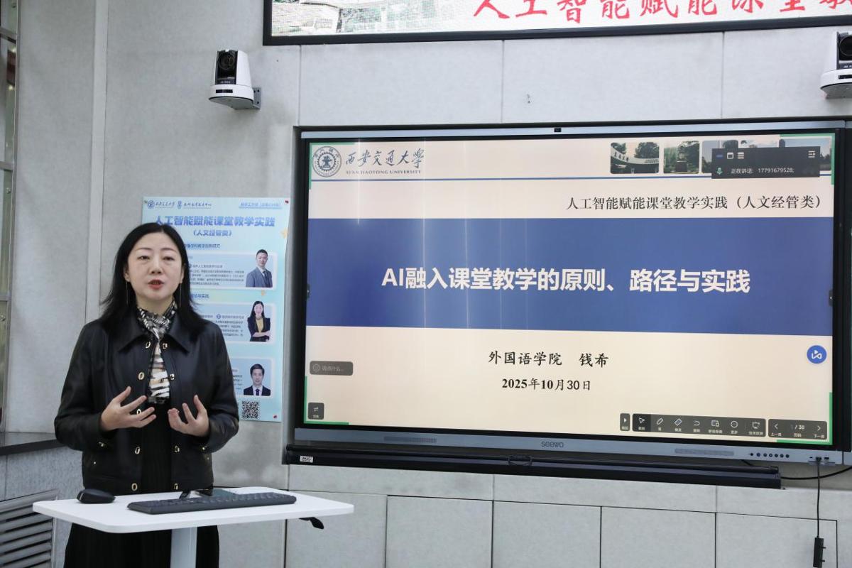 为深入推进人工智能与人文经管类课程教学的深度融合,助力教师提升AI 时代教学创新能力,10月30日,教师教学发展中心举办“人工智能赋能课堂教学实践(人文经管类)”教学工作坊。活动聚焦人文经管类学科特色,邀请新媒体学院王威力副教授、外国语学院钱希教授、经金学院董志龙副教授担任主讲人,通过“理论+案例+实操”的形式,为在场教师提供可借鉴、可落地的教学方案。活动由教师教学发展中心副主任张健主持,来自新媒体学院、外国语学院、经济与金融学院等多个人文经管相关院系的教师参加活动。