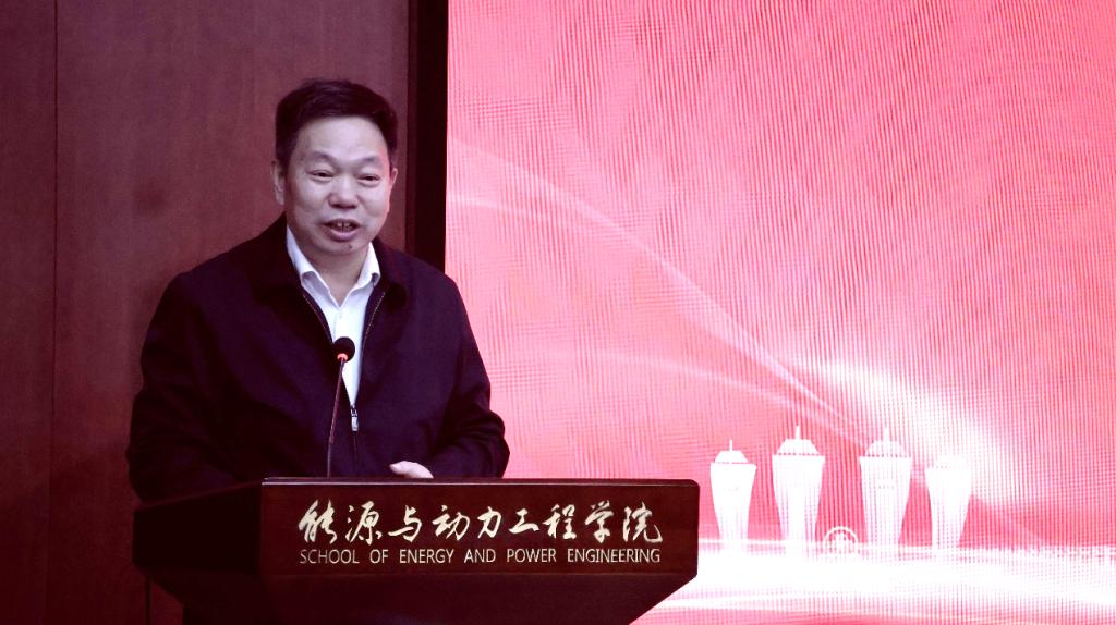 能动学院副院长屈治国代表学院讲话,他感谢校友们对学校学院产教融合和学科发展的关心和支持,研究院的成立将成为产教融合方面的新突破,未来研究院将打破传统校企合作模式,探索建立以企业为主体的产教融合创新创业模式,积极对接国家重大战略需求,推动从技术研发向引领产业生态发展,在工程化实战项目中真正实现校企协同育人。
