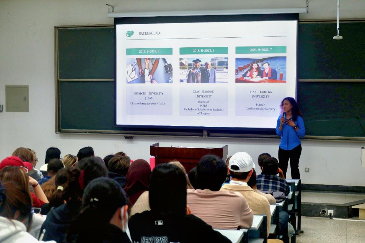 为提升国际学生的健康意识,普及常见疾病的病理基础与科学预防知识,4月13日下午,国际教育学院在兴庆校区成功举办第四期“医”路同行——国际学生医疗健康知识讲座。本期讲座特邀赤道几内亚籍、心血管外科学专业硕士生爱琳(Cristina Nkene Apue Nchama)担任主讲人,主题为“了解你的心脏:健康生活的简单步骤”。活动吸引了150余名来自不同国家的国际学生参加。