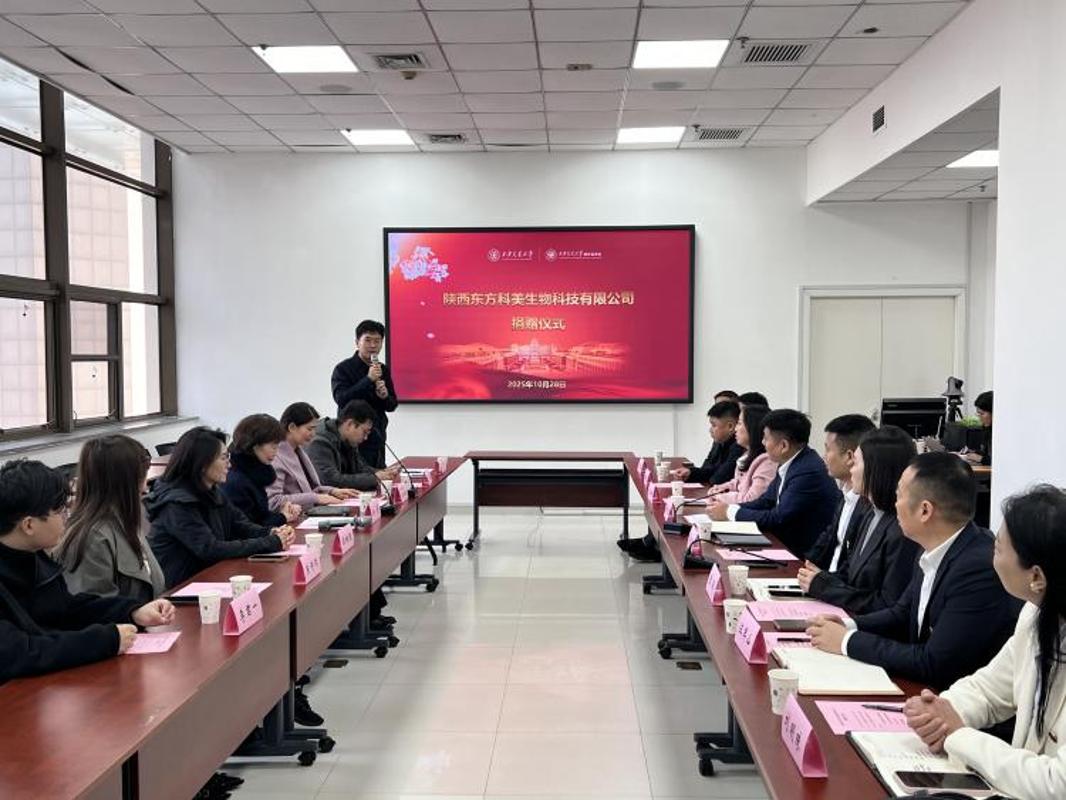 10月28日,西安交通大学—陕西东方科美生物科技有限公司(以下简称“东方科美”)捐赠仪式在兴庆校区举行。东方科美集团董事长高禄栋、总经理高陆虎、资金中心主任刘喜娟、人力副总刘明珠,西安交通大学励志书院院务主任徐慧、副主任库来西·依布拉音,教育基金会顾姝靓及辅导员代表等出席仪式。