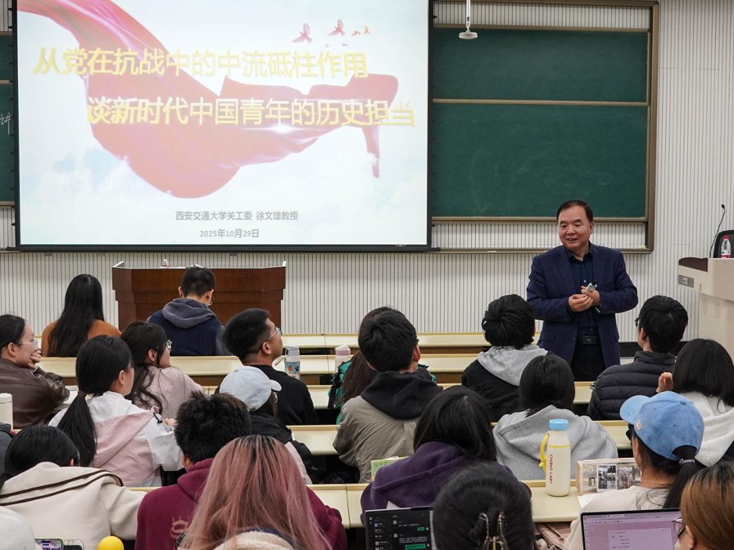 为传承红色基因,扎实推进入党积极分子思想引领工作,10月29日下午,西安交通大学关工委副主任徐文雄以“从党在抗战中的中流砥柱作用,谈新时代中国青年的历史担当”为主题,开启了第二讲党课。崇实书院党总支书记、院务主任段继超,崇实书院辅导员李瑞昕、康旭博,兼职辅导员焦晶出席,崇实书院160余名入党积极分子参加学习。党课由段继超主持。