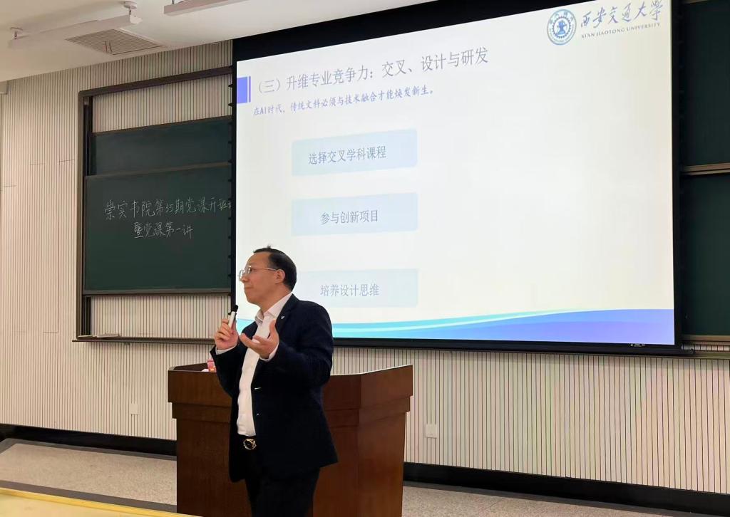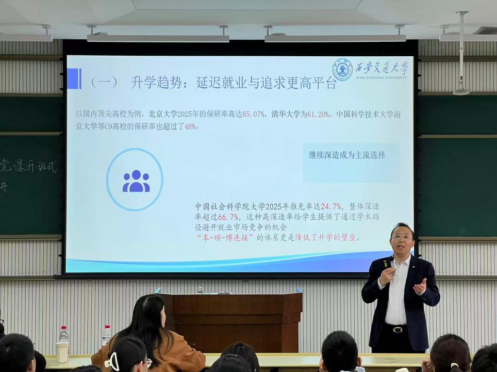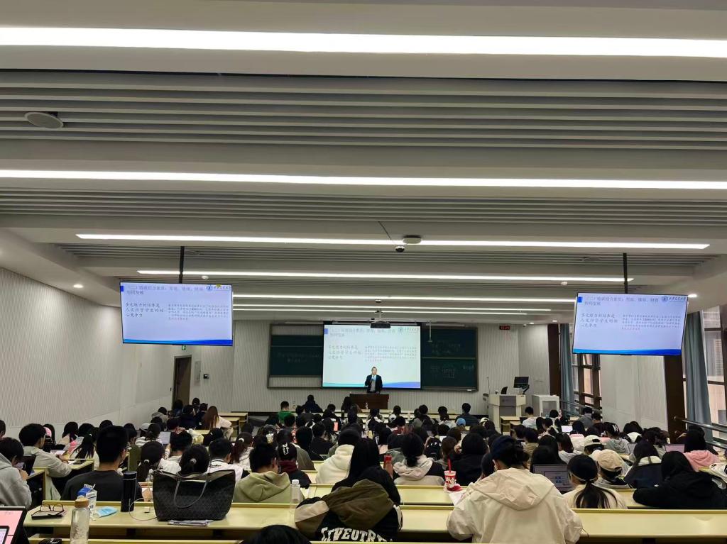 为深入学习党的二十大和党的二十届历次全会精神,学习贯彻习近平新时代中国特色社会主义思想,落实教育强国和“十五五”规划目标任务,同时引导青年明确生涯方向、提升就业竞争力,为未来职业发展筑牢根基,进一步加强入党积极分子培养工作。10月29日下午,新媒体学院党委副书记吴锋以“人文经管就业视角下的青年生涯规划”为题,开启了本学期第一讲党课。崇实书院党总支书记、院务主任段继超,崇实书院党总支秘书薛成,兼职辅导员焦晶参加活动,崇实书院160余名入党积极分子参加学习。党课由段继超主持。