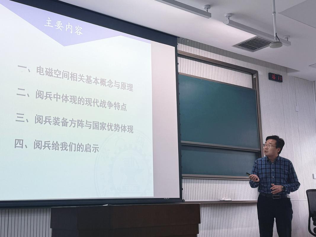 11月26日,信通学院党总支书记张安学以“信息主导,制胜未来”为主题开展党课,系统解析了电磁空间技术体系与阅兵装备发展成就,指出了相控阵雷达、高超音速导弹等核心技术突破对国防现代化的战略支撑,阐释了“集中力量办大事”的制度优势。他号召入党积极分子夯实电磁场理论根基,投身关键技术攻关,在科技自立自强中担当时代重任,为民族复兴贡献创新力量。