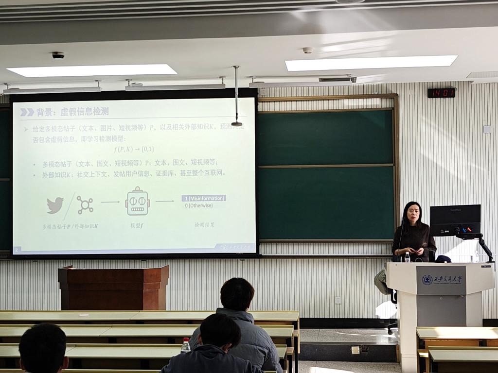 11月19日,计算机学院党总支书记罗敏楠探讨了在信息感知受限条件下文本检测的技术难点与发展前沿,对现有检测系统存在的局限性进行了剖析,并就如何有效识别与消解伪相关线索展开了讨论,带领入党积极分子探讨现有系统局限性与伪相关线索消解方法,倡导科研遵循“大胆假设、严谨验证”的范式。