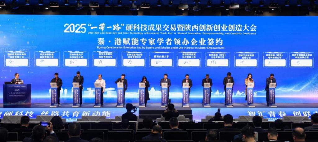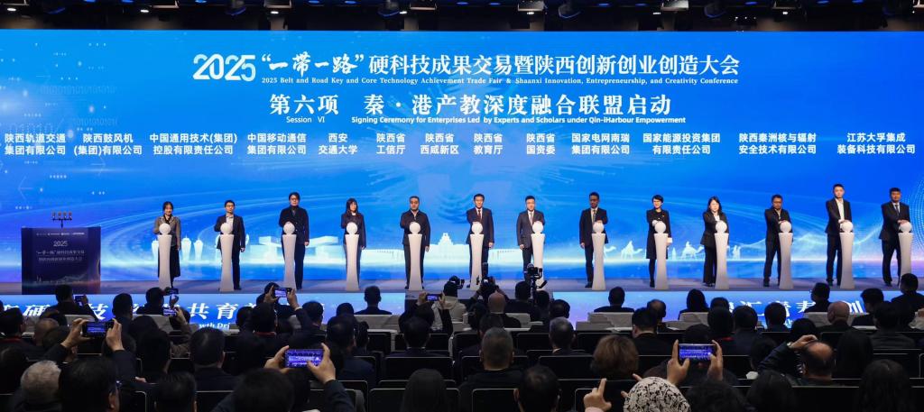 为贯彻落实党的二十大和二十届历次全会精神,进一步深化产教融合,促进科技成果高质量转移转化,培育发展新质生产力,服务现代化产业体系建设和构建人类命运共同体,11月7日,2025“一带一路”硬科技成果交易暨陕西创新创业创造大会开幕式在中国西部科技创新港举行。