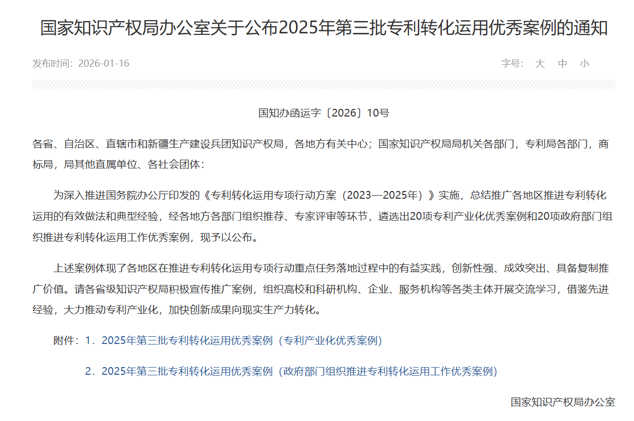 此次案例评选由国家知识产权局组织,经地方推荐、专家评审等多轮严格遴选,最终在全国范围内确定40项优秀案例,其中专利产业化优秀案例与政府部门组织推进优秀案例各20项。西安交大申报案例凭借系统化的全链条设计、清晰可行的实施路径以及已取得的显著成效,在评选中脱颖而出,充分体现了国家对西安交大在知识产权转化机制创新方面积极探索与实践成果的高度认可,标志着学校以作价入股为代表的成果转化模式已形成成熟机制,具备在全国高校推广应用的价值。