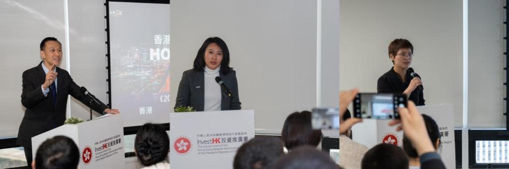 在专题分享环节,香港人才服务办公室总监陈海劲以香港优势和机遇为切入点,详细介绍香港吸纳国际人才的重点政策和服务;香港投资署生命与健康科学高级副总裁骆淘聚焦香港创科发展的最新动态和机遇,介绍香港科技和工业园区的整体布局,重点阐述有关政策支持;彦德国际集团CFO何阿会从实务操作层面,解析赴港设立公司的法律流程与跨境税务安排,向企业分享“出海”的成功案例。