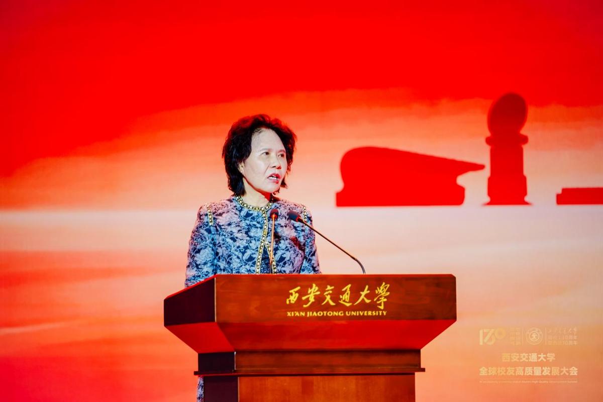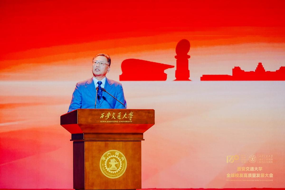 西安交通大学校长、中国工程院院士张立群代表学校向全球交大人致以诚挚问候。他表示,130年来,交大始终与民族复兴同频共振。从盛宣怀“自强首在储才,储才必先兴学”的创校初心,再到1956年“向科学进军,建设大西北”的西迁壮举,一代代交大人用行动诠释了“与党和国家、与民族和人民同呼吸、共命运”的使命担当。在新的历史起点,学校依托中国西部科技创新港,推进产学研深度融合,积极服务国家发展大局。交大人始终以实干成就梦想,用奋斗书写答卷,交大校友创办及任高管的企业超过万家,其中上市公司50余家。校友航天员张陆在空间站为母校挥毫送福,各地校友点亮地标,这份深情令人动容。