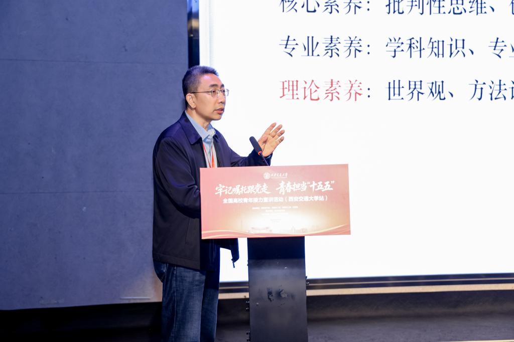 理论学习环节,西安交通大学钱学森图书馆馆长、马克思主义学院教授马忠带来《以理论素养引领时代担当》专题授课。他围绕理论素养的重要价值、内在要求、提升路径三大维度展开授课,结合新时代青年的历史使命与时代担当,深入浅出地阐释了理论学习对青年宣讲工作的重要意义,为各校宣讲团成员提供了有力的思想指引和方法指导。