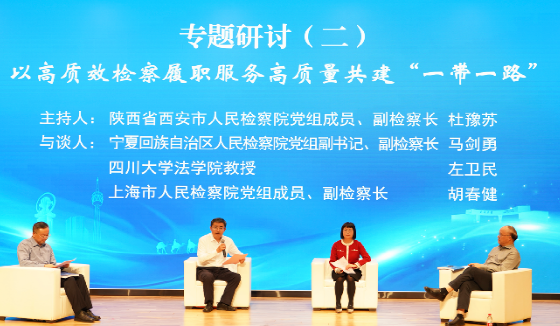 第二单位的专题研讨由西安市人民检察院党组成员、副检察长杜豫苏主持。三位与谈人宁夏回族自治区人民检察院党组副书记、副检察长马剑勇,四川大学法学院教授左卫民,上海市人民检察院党组成员、副检察长胡春健分别对八位报告人徐翔、杨陈、胡雅岚,郭孟强、王阳雪子、段练,党盟盟、钟佩的发言进行点评,围绕“一带一路”建设中检察业务能力提升和检察机关职能发挥作了深入交流。