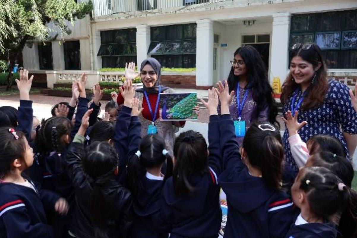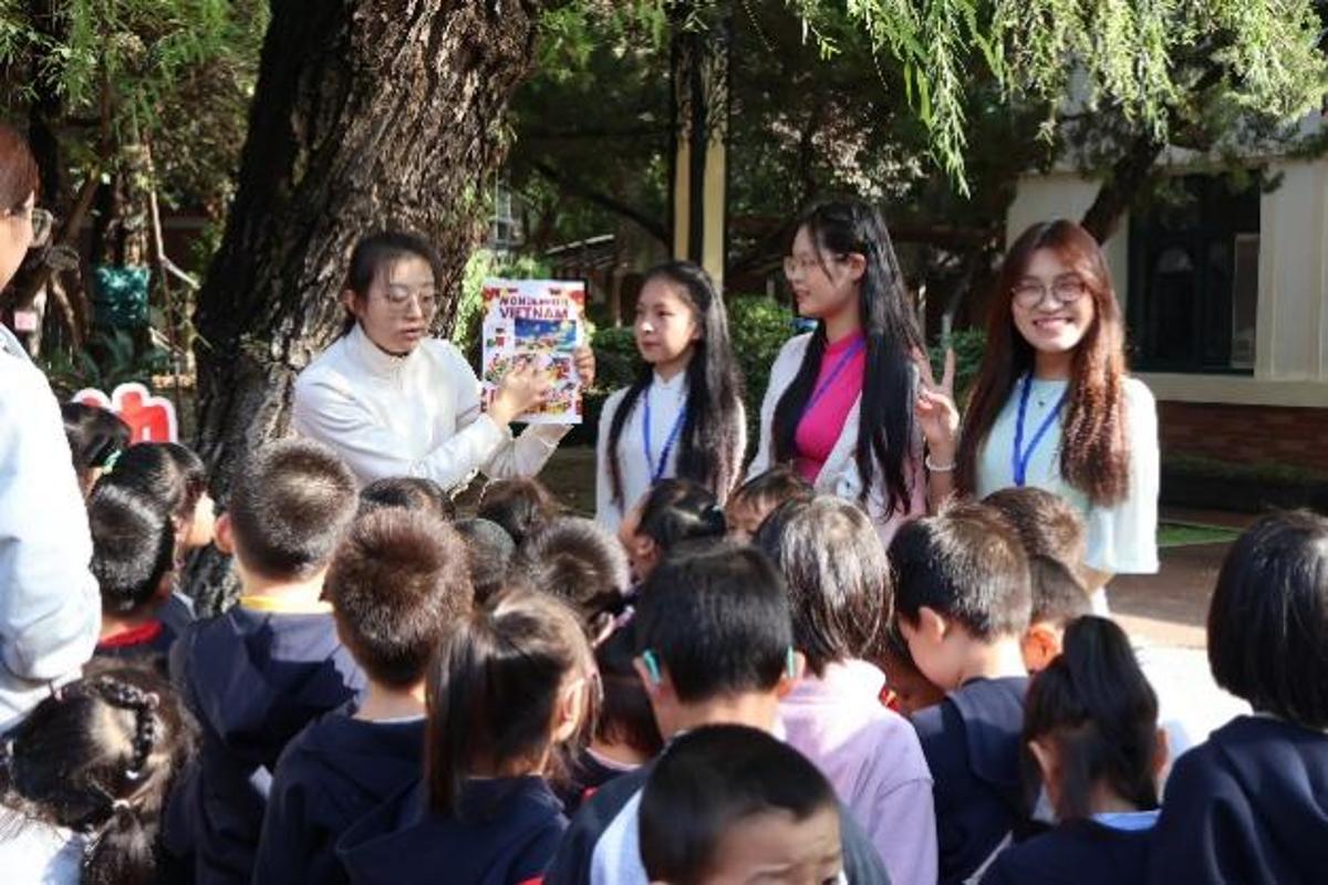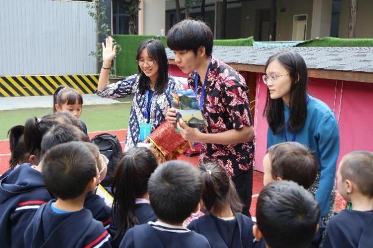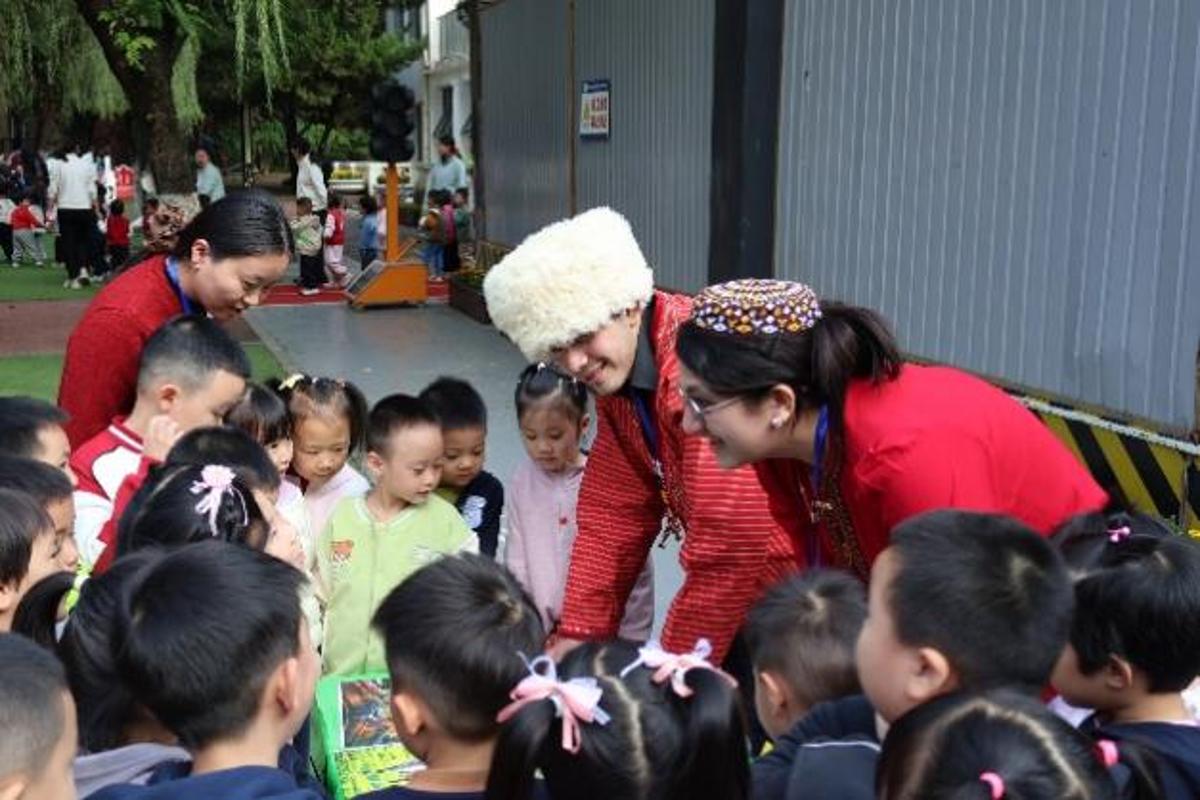 国际学生代表们热情地打招呼,用母语亲切教学不同语言的“你好”。孩子们还将自己亲手制作的小礼物送出,一份份稚拙而真诚的心意,悄然播下了友谊的种子。
