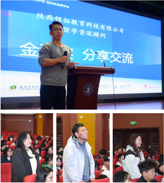 陕西领拓教育科技有限公司资深顾问金秋实从“政策解读、路径判断、材料准备、心理建设与行前规划”五大方面,为学子提供了全流程留学指导。他结合多年行业经验,详细解析了不同国家留学政策差异、申请材料核心要素及行前心理调适方法,强调“精准定位+科学规划”对留学成功的重要性。在互动环节中,同学们围绕语言备考、院校选择等问题积极提问,专家逐一解答,现场气氛热烈。