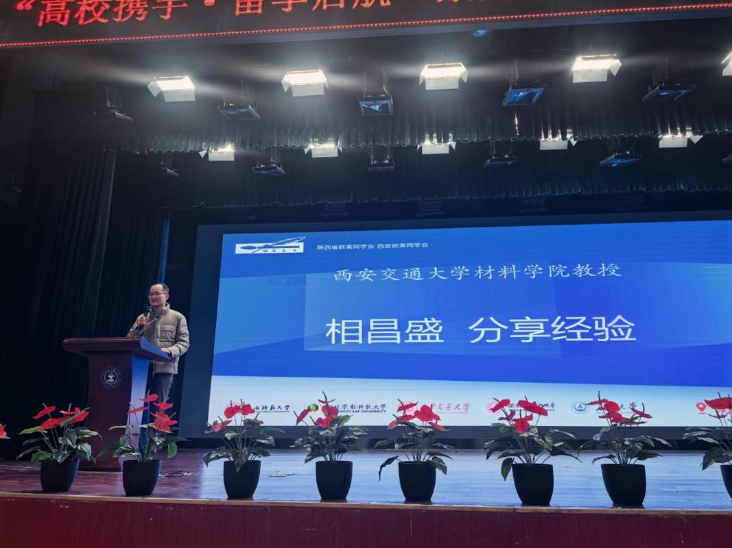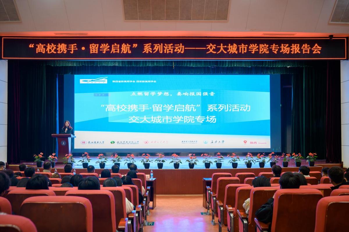 为贯彻落实习近平总书记致欧美同学会成立110周年的贺信精神,加强留学人员思想引领,厚植留学报国情怀,发挥留联会育人作用,10月23日下午,在陕西省欧美同学会、西安欧美同学会、西安交通大学党委统战部的指导下,由西安交通大学留联会、西安交通大学城市学院共同主办的“高校携手·留学起航”系列活动第二场报告会在西安交大城市学院教二报告厅举办。西安交大城市学院党委书记严红昌、校长助理姬志国、党委工作部部长霍伟森,陕西省欧美同学会副秘书长、西安交大留联会秘书长、西安交大材料学院党委副书记魏炜,西安交大留联会副秘书长刘天野,西安交大材料学院教授相昌盛,陕西领拓教育科技有限公司董事长、西安交大西安校友会副秘书长李帅等领导嘉宾及城市学院师生近200人参加了活动。活动由西安交大城市学院团委书记茹静主持。