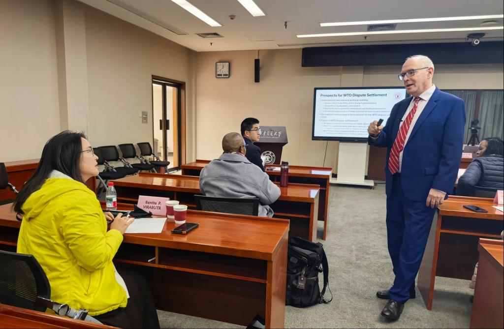 10月22日,世贸组织上诉机构前主席、我校国家级领军人才计划入选者Peter Van Den Bossche教授讲授了题为“WTO Dispute Settlement”的课程,从WTO争端解决的历史、机遇、危机、未来发展等方面全面介绍了世界贸易争端解决机制。