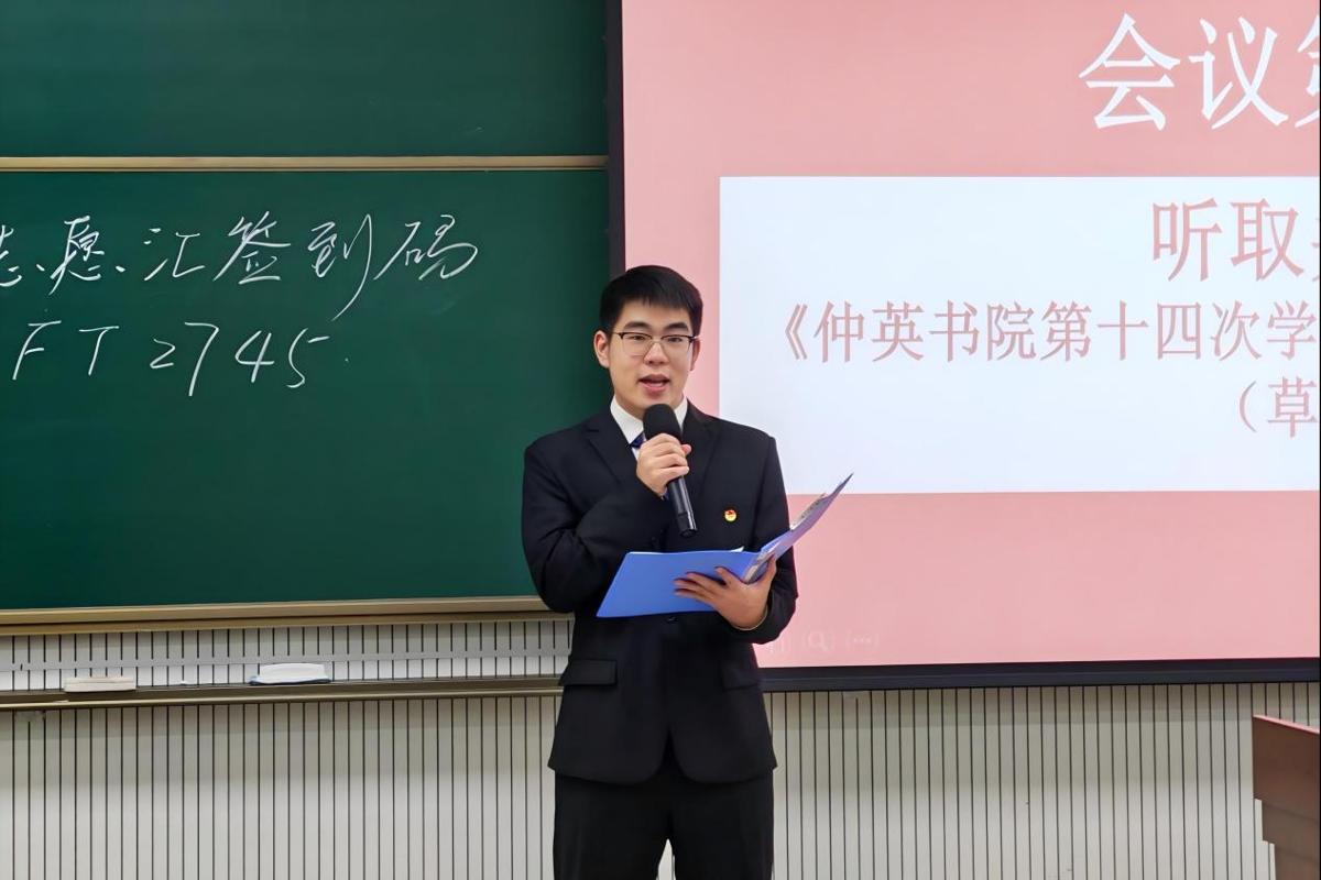 近日,仲英书院第十四次学生代表大会召开,仲英书院党总支书记、院务主任黄丽宁,校团委实践部部长边志坚、仲英书院团委书记聂晓朦出席,西安交通大学学生会代表及彭康书院、宗濂书院、文治书院等兄弟书院的团学代表及仲英书院全体学生代表参会。