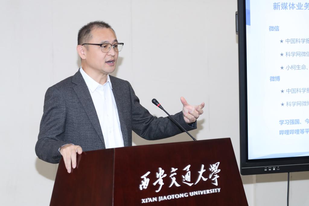 成进对与会嘉宾表示欢迎。他表示,科技传播是服务国家发展、让科技创新力量深入人心的重要桥梁。近年来,西安交通大学在扎实推进科技创新的同时,始终将科技传播摆在重要位置。学校积极构建大宣传格局,深化与以中国科学报为代表的各级主流媒体合作,围绕人才培养、科学研究和产教融合等主题,通过媒体采风、新闻发布与品牌活动等多种形式,在科研成果传播、科学家精神弘扬以及科技传播能力建设等方面取得显著成效。此次研讨会为陕西高校科技传播工作提供了宝贵的交流平台,希望各高校凝聚共识、协同发力,共同探索科技传播的新理念、新路径、新范式,携手奏响陕西科技创新的“大合唱”。