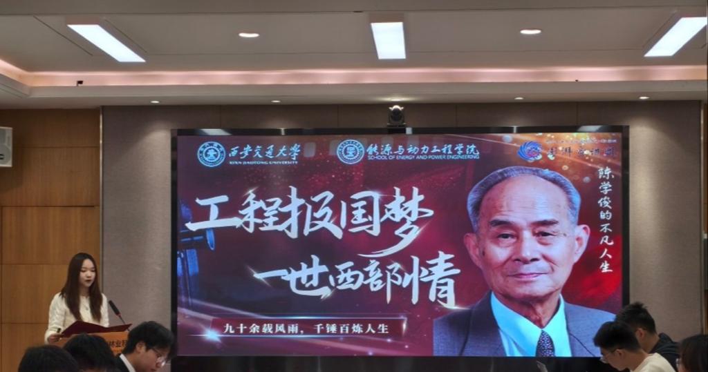 能动学院澎湃宣讲团团长杜冷睿作“工程报国梦,一世西部情”的主题分享,通过西迁老教授陈学俊院士的故事,回顾了交大人的西迁历程,介绍了西迁精神的深刻内涵,鼓励新时代青年学子在要赓续红色血脉、勇担时代使命。