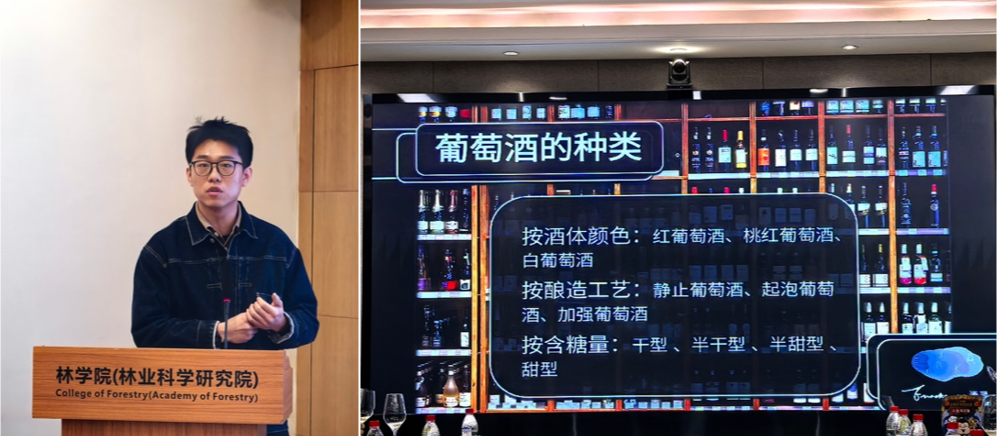西北农林科技大学葡萄酒爱好者协会向座谈师生介绍了中国葡萄酒的文化底蕴和历史溯源,围绕葡萄酒的类型以及品鉴方法等为同学们生动形象地讲解了葡萄酒的基础知识,同时带来各具特色的优质葡萄酒供师生边学边品。