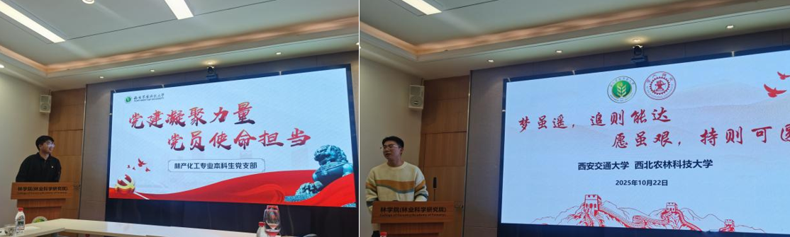 为深入学习贯彻习近平新时代中国特色社会主义思想,全面落实立德树人根本任务,进一步深化高校之间的沟通交流与联学共建,持续推进实践育人深度融入“大思政课”,近日,西安交通大学能源与动力工程学院2024级热流科学与工程硕士第一党支部、2024级环境科学与工程硕士党支部、硕5037团支部、硕5059团支部联合西北农林科技大学林学院,开展“党建引领促发展、携手共建谱新篇”主题联学共建活动。