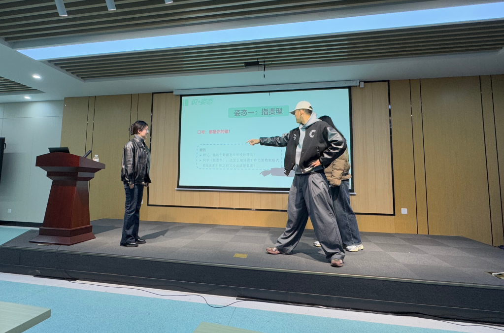 同学们全身心投入情景演绎,从语气、表情到肢体动作都细致呈现,在角色代入中真切体会到不同沟通方式带来的情绪差异与互动效果,也更清晰认识到不当沟通对团队氛围的影响。