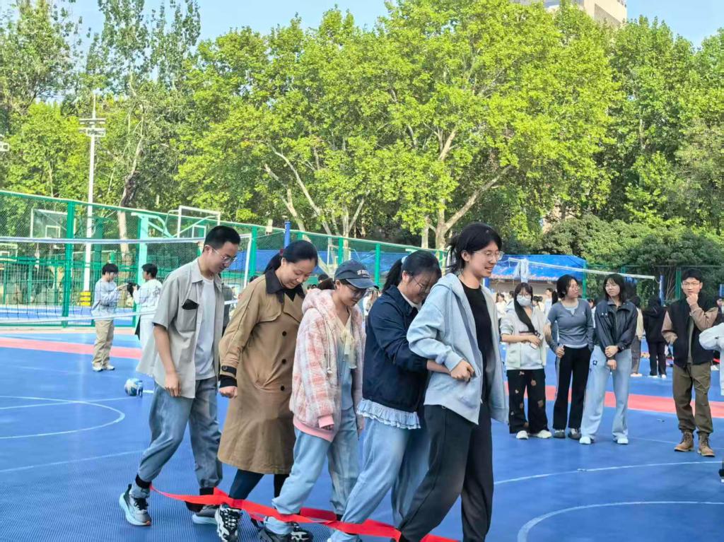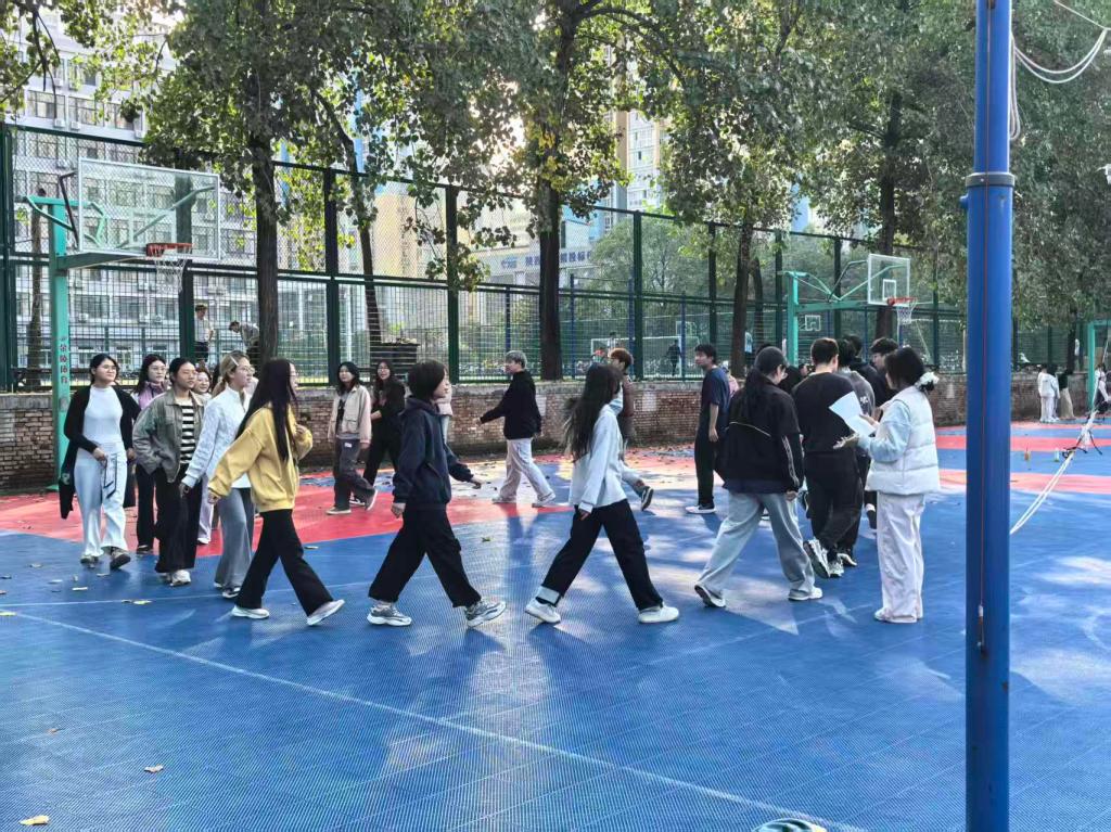 “心口不一”最考验同学们的反应能力。围圈慢走,听数抱团,两队成员共计24名同学在“数字抱团”中上演策略与反应的双重考验。指令一出,迅速结盟,落单淘汰。赛场瞬间化身速度与智慧的竞技场,气氛热烈非常。