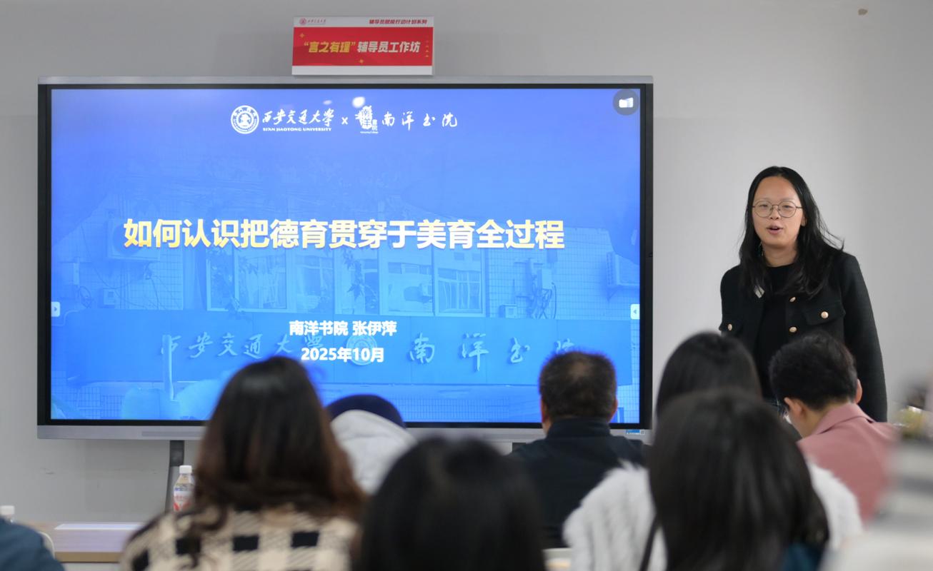 南洋书院张伊萍分享了如何认识把德育贯穿于美育全过程,从美育工作的政策文件讲起,针对为何贯穿、贯穿什么、如何有效贯穿三方面展开阐述,同时也表明这一融合所需要的精准性、持续性、实效性。