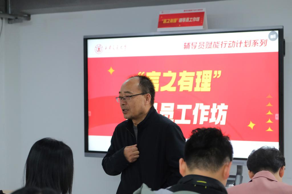 王琦作总结发言,对四位老师的分享表示肯定,称其内容详实、贴合辅导员工作实际,具有较强的参考价值。她谈道,“言之有理”辅导员工作坊为辅导员搭建了交流学习的平台,能有效破解工作中的常见困惑。此外,王琦鼓励辅导员们既要沉下心夯实理论基础,用专业知识武装自己,也要主动提升综合素养,以更好地应对学生工作中的各类挑战。