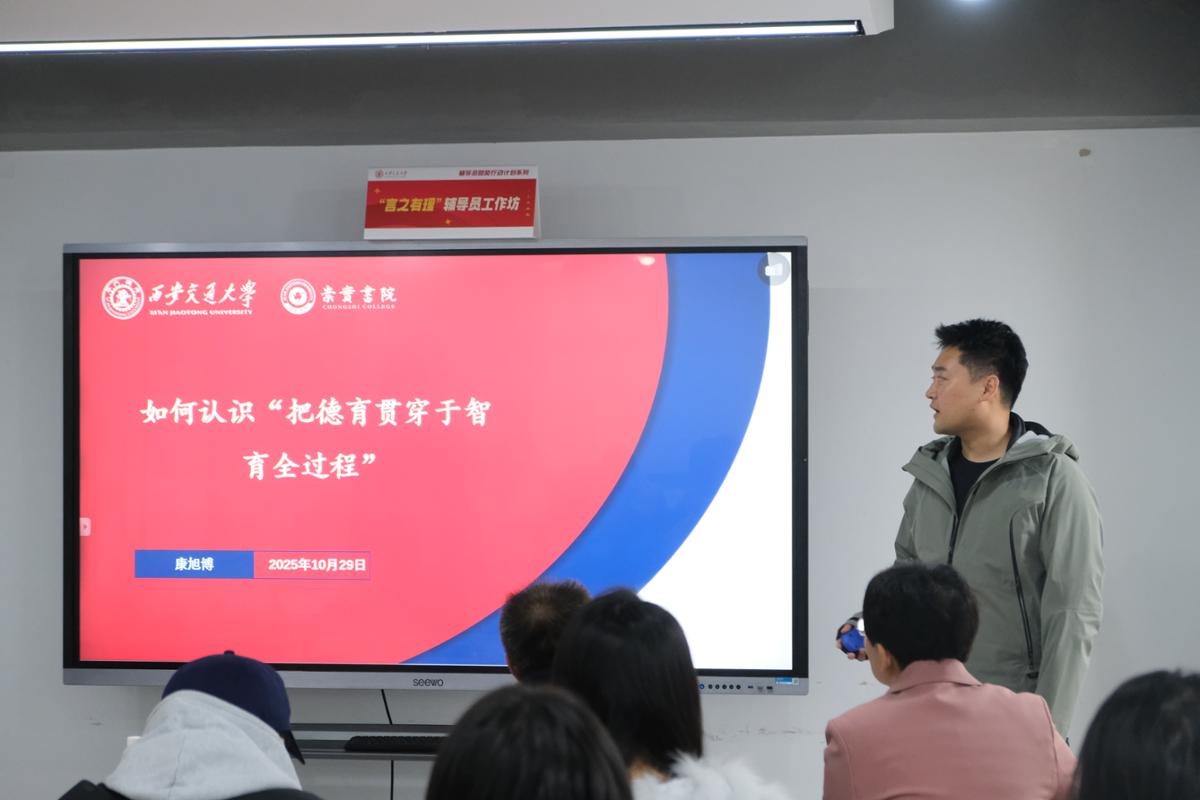 为帮助辅导员提升将德育融入日常教育教学全过程的实践能力,10月29日上午,党委学工部在彭康书院举办“言之有理”辅导员工作坊——如何认识把德育贯穿于教育全过程。彭康书院院务主任叶明,学生处思想政治教育主管魏波,学生处托合提以及2024年入职本科生辅导员参加活动。活动由学生处副处长、文治书院院务主任王琦主持。