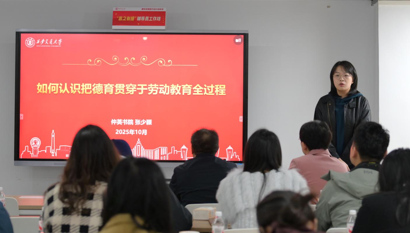 仲英书院张少颖带来如何认识把德育贯穿于劳动教育全过程的主题分享,从为何做、如何做以及怎么做展开介绍,并指出劳动教育以实践为核心特征,让抽象的德育理念、智育知识、体育技能、美育感知转化为可操作、可体验的具体行动,成为五育从“理念”落地“实践”的重要依托。