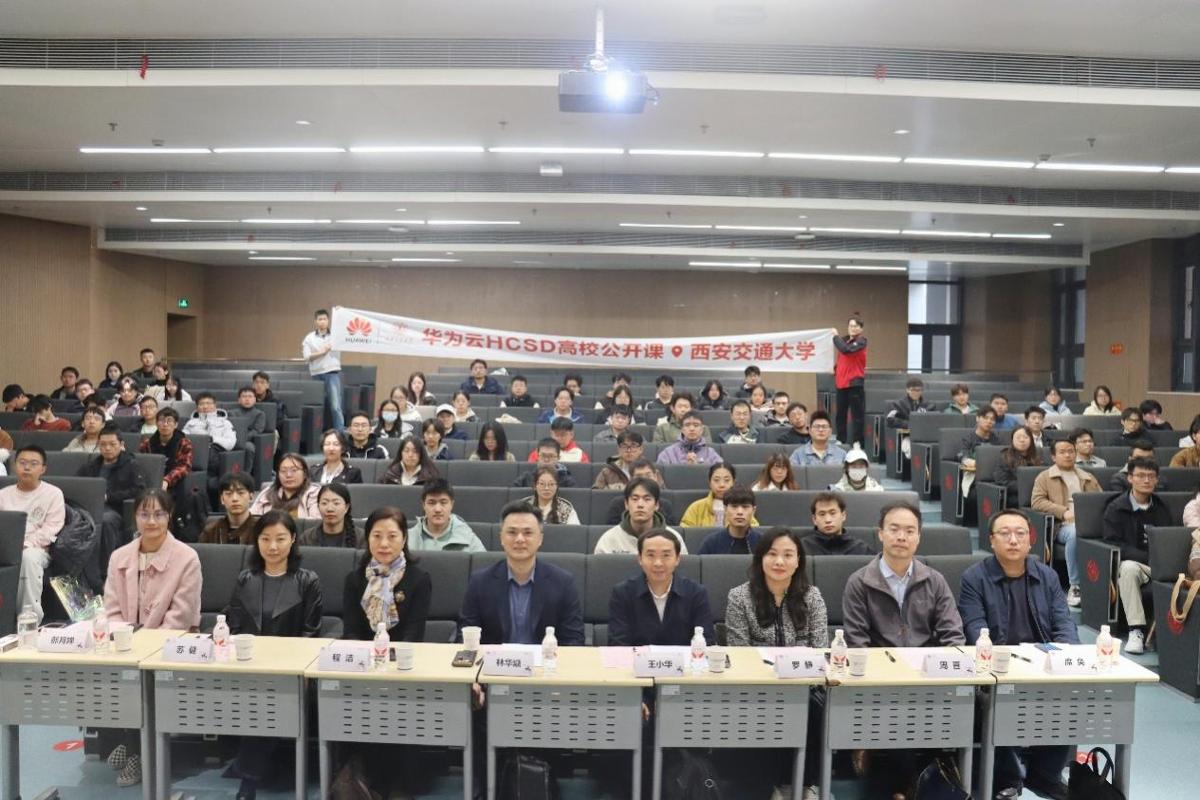 在人工智能加速演进的时代浪潮下,深化产教融合已成为打通技术创新、人才培养与产业应用闭环、培育新质生产力的战略支点。10月23日,由华为云计算技术有限公司主办、西安交通大学未来技术学院承办的“华为云HCSD高校公开课”在中国西部科技创新港成功举办。华为云开发者支持与运营部部长林华鼎、高校生态总监罗静、西安交通大学高校系统部主任苏健带领技术专家团队走进校园,与西安交通大学未来技术学院和现代产业学院执行院长王小华、副院长程洁、挂职副院长周晋、席奂等学院领导及学生展开深入交流。