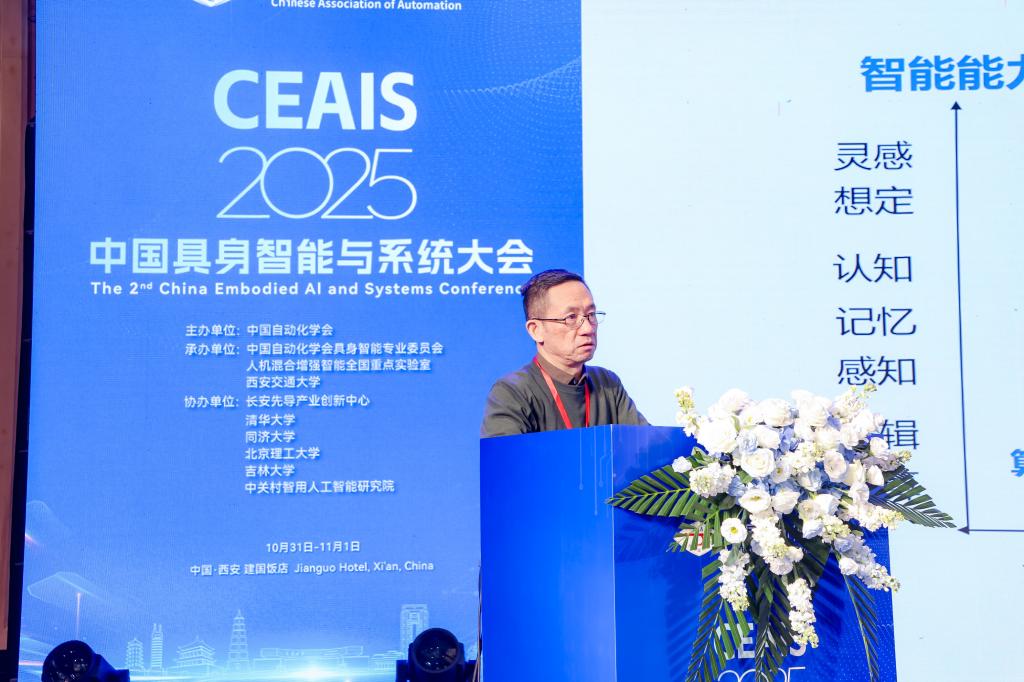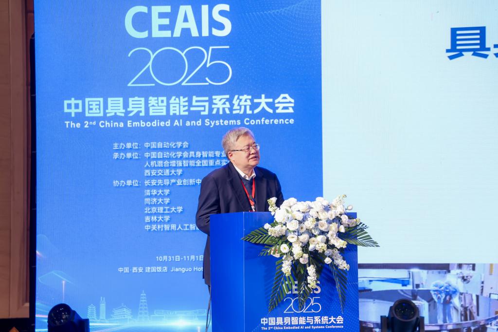 2025年11月1日,由中国自动化学会主办,中国自动化学会具身智能专业委员会、人机混合增强智能全国重点实验室、西安交通大学承办,长安先导产业创新中心、清华大学、同济大学、北京理工大学、吉林大学和中关村智用人工智能研究院协办的第二届中国具身智能与系统大会(CEAIS 2025)在陕西省西安市召开。大会汇聚了国内具身智能与机器人领域的多位院士、近百位资深专家及千余名来自学术界和产业界的代表,以“推动具身智能技术创新与产业融合”为主题,围绕具身智能基础模型、世界模型与具身学习、网联具身智能、智能计算架构与芯片、具身智能驾驶、人形与仿生机器人等前沿方向展开深入研讨,共同探讨技术发展趋势与产业未来。