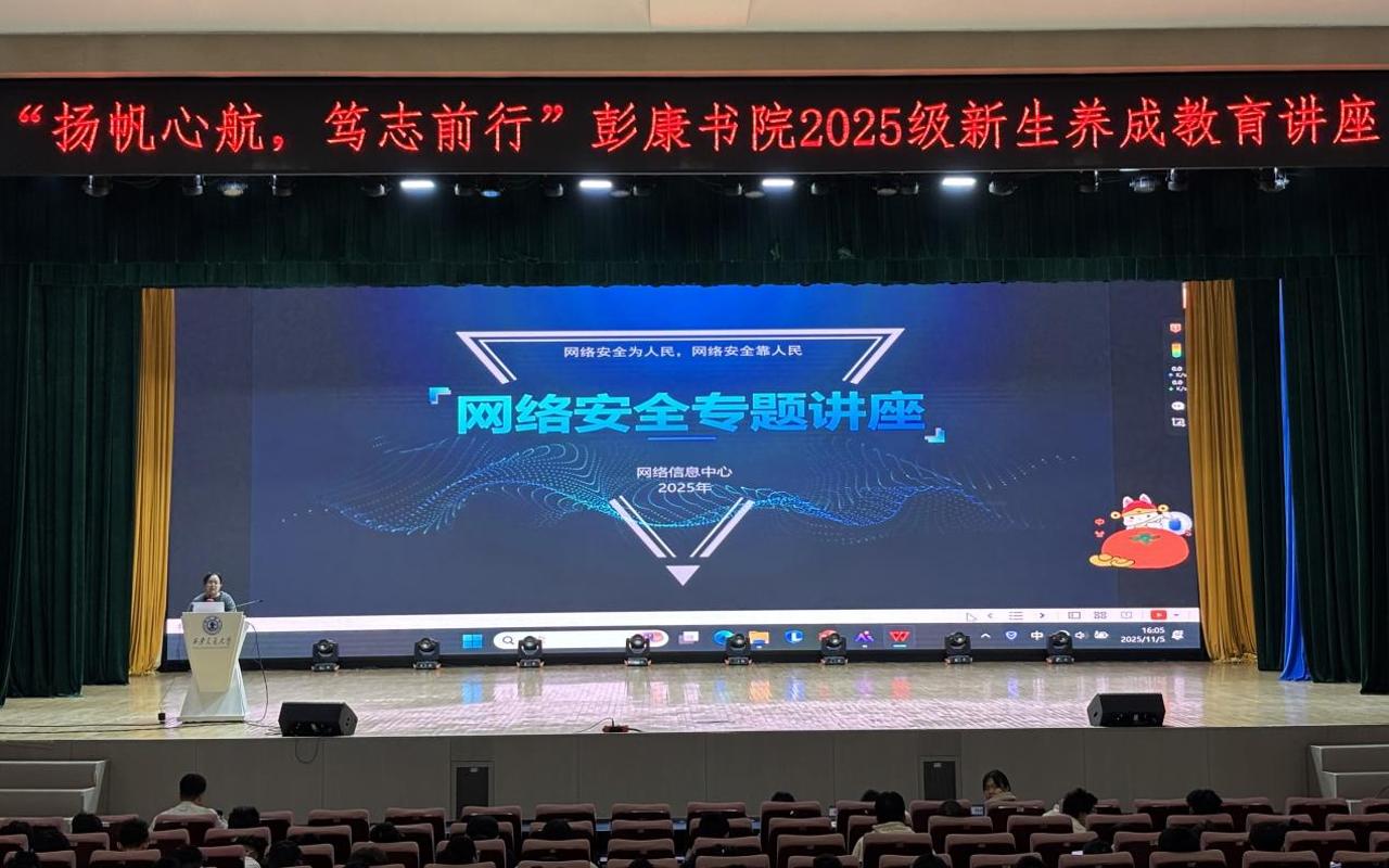 为助力2025级新生快速适应大学生活,筑牢思想根基、安全防线与成长根基,11月5日下午,彭康书院在宪梓堂举办新生养成教育专题讲座。本次讲座由书院兼职辅导员高婧主持,并邀请学生心理发展指导中心专职教师康楠、国际处出入境办学生出国业务专员闫婷、网络中心信息管理办公室主管王齐担任主讲嘉宾,为新生送上全方位成长指导。2025级新生辅导员以及全体本科新生参加活动。