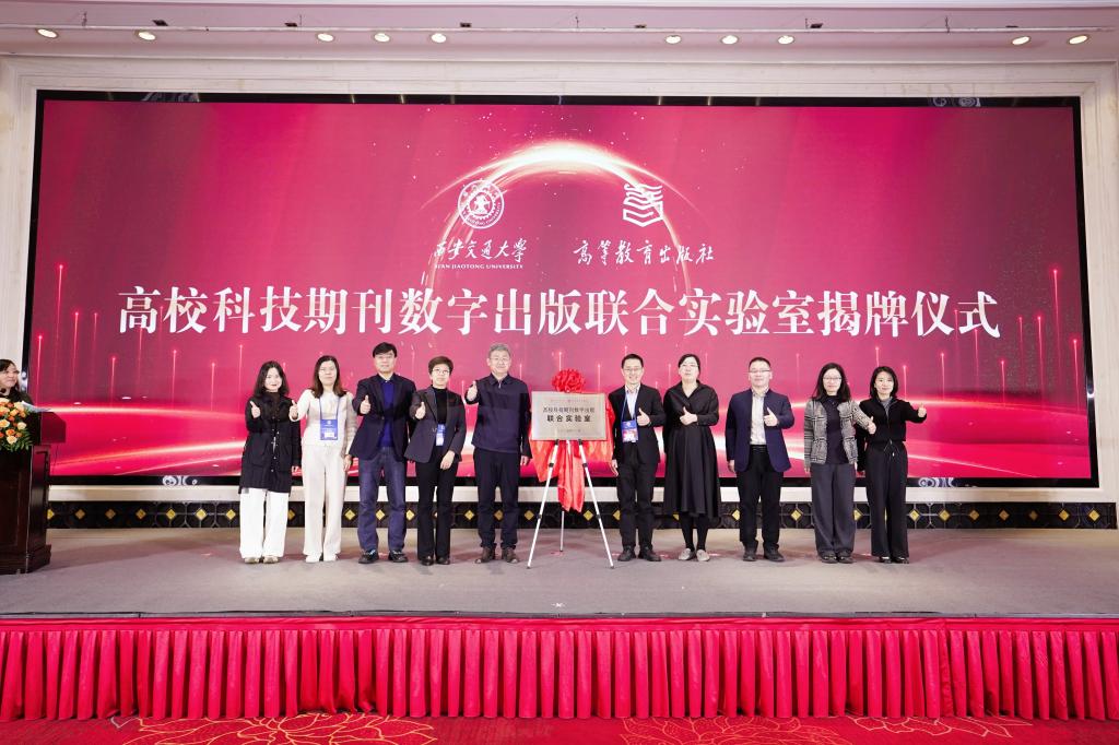 2025年11月7日上午,在中国高校科技期刊研究会主办、西安交通大学期刊中心协办的“中国高校科技期刊研究会第29次年会”开幕式上,西安交通大学与高等教育出版社共同建立的“高校科技期刊数字出版联合实验室”揭牌仪式举行。