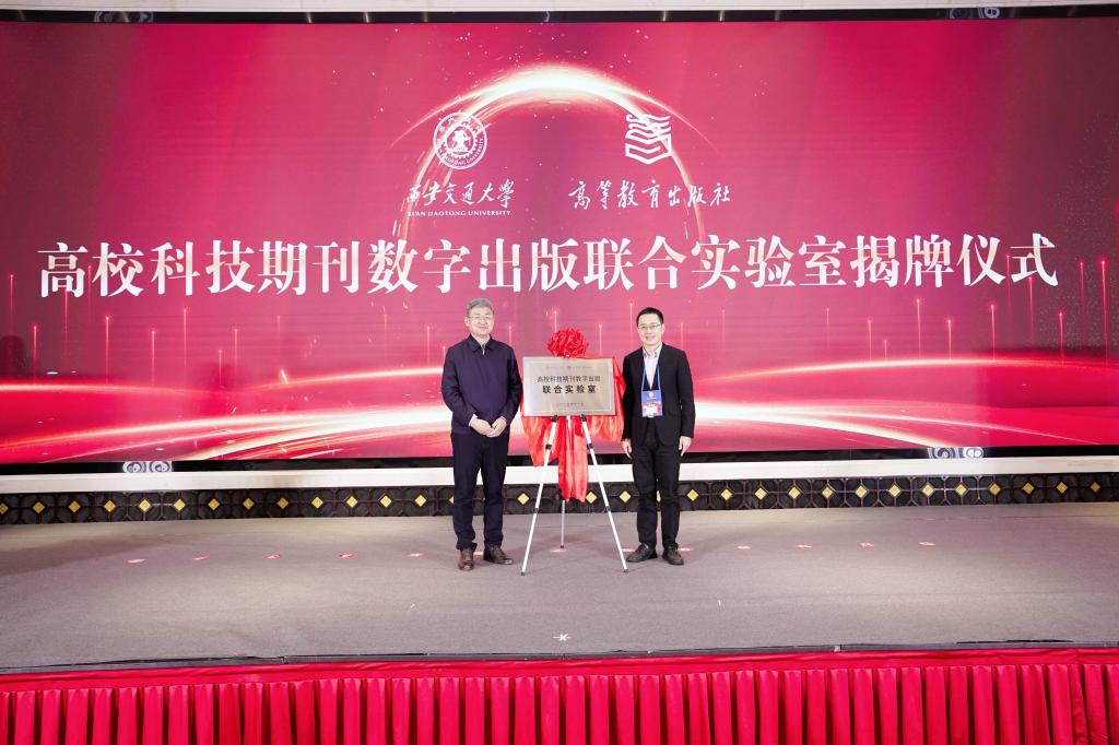 西安交通大学党委副书记孙早与高等教育出版社副总编辑阳化冰共同为“高校科技期刊数字出版联合实验室”揭牌。实验室的成立是响应国家文化数字化战略、构建自主知识体系传播渠道的有力实践,其不仅承载着推动科技期刊数字化转型、提升国际传播能力的重任。