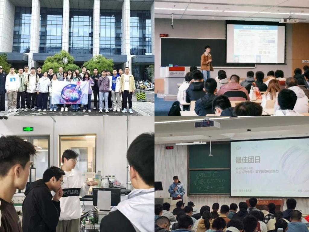 立足学科特色,各团支部注重推动学术视野拓展,将专业学习与社会实践相结合,与科研兴趣共培育。数试2501团支部开展“明辨职途·筑梦未来”专题学习,邀请学长分享数学专业在算法、教研等领域的多元路径,帮助团员树立正确就业观;化学2502班赴创新港参观实验室,在扫描电镜、核磁共振仪等设备前直观感受科研前沿;医电2501团支部联合能动学院研究生开展本研交流,围绕保研政策、竞赛路径、学业规划深入研讨;“挑战杯”“腾飞杯”经验分享、Python学习小组、算法竞赛指导等活动,助力青年夯实专业基础、勇攀科技高峰。支部还围绕国家安全、科技创新等主题组织理论学习、知识竞赛与研讨,引导青年将个人理想融入国家发展大局。