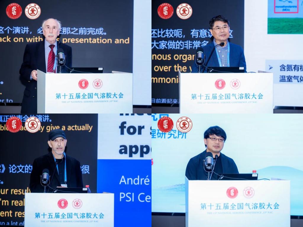 11月1日上午的开幕式共设置4场大会报告。Roy Harrison教授团队围绕碳中和政策对城市空气质量中超细颗粒物(UFP)的影响展开研究,探讨了UFP的来源路径。陈建民教授团队聚焦有机含氮气溶胶,结合大气多介质中含氮有机物的迁移转化规律,揭示其对大气氧化性增强、温室气体生成及海洋营养输送等的影响,并探讨了含氮新污染物(如硝基芳香烃、亚胺等)的形成路径;André Prévôt教授团队围绕源解析从“事后分析”到“实时预警”的范式转变需求,直面分子级别测量的灵敏度挑战,通过开发多仪器数据联合分析模型,成功将高分辨率质谱技术获取的“分子指纹”信息与移动监测平台相结合,构建了从污染质量溯源到健康风险溯源的新范式。苏杭研究员围绕气溶胶在空气污染、气候变化及新发传染病防控中的关键作用,系统阐述了气溶胶来源与粒径分布、健康气候协同效应、边界层相互作用等前沿议题,提出了基于多相缓冲理论的气溶胶酸度调控策略。