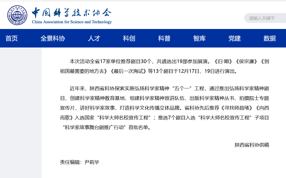 近年来,“大先生”系列话剧育人成效持续扩大,形成“关键节点展演+多元场景覆盖”的传播矩阵,累计吸引3000余名师生参与创排演出。评比期间,组织线下展演24场、线上展播7场,线上线下观演师生逾4万人次,实现演出单位新生观演全覆盖,有力推动思政教育与文化育人深度融合。期间通过学校官微发布高品质育人成效推文3篇,话剧《屈梁生·给机器看病的医生》被光明日报报道,摄制完成话剧视频5部。同时,该系列作品在省级乃至全国平台上屡获佳绩。在第二届陕西省弘扬科学家精神舞台剧展演中斩获二等奖1项、三等奖2项;两部微话剧成功入选中国科协2025年“科学家故事舞台剧推广行动”第二批支持名单;一部微话剧受邀赴中国澳门演出,彰显了日益扩大的影响力与示范效应。