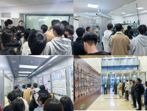 交流结束后,同学们在科研人员的带领下,开启了“探秘国之重器”的实地参观。在月球样品洁净实验室,田恒次研究员细致讲解了嫦娥五号月壤样品的储存、分析流程,当看到珍贵的月壤样品时,同学们纷纷屏息驻足,近距离感受航天探索与地质科研的魅力;在大型加速器质谱实验室,陈实高工操作演示了设备运行原理,介绍了其在古气候研究、文物年代测定等领域的应用,让同学们惊叹于科研仪器的强大威力;在离子探针实验室,刘宇正高级工程师通过数据图表,直观展示了岩石成分分析的全过程,让大家对地质科研的精密性有了更深刻的认知。此外,同学们还参观了所史馆,在张尉的讲解声中,在一幅幅老照片、一件件科研实物中,重温了中国科学院地质与地球物理研究所的发展历程与科学家们的坚守精神。