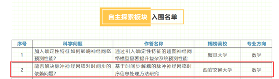 近日,教育部第四届“提问与猜想”活动线下评审展示交流会入围名单揭晓,西安交大拔尖计划2.0基地数学试验班学生陆迅同学针对科学问题“能否解决脉冲神经网络对时间步的依赖问题?”提交的回应性作答“基于时间步解耦的脉冲神经网络时序信息处理方法研究”入围。