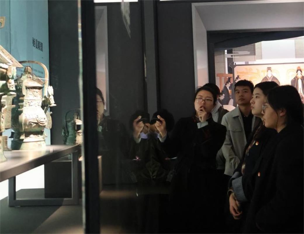 以“青铜器之乡”闻名于世的宝鸡孕育了周秦文化。在宝鸡青铜器博物院,讲解员讲解了馆内陈列的众多青铜器展品铸造工艺及其历史价值。这些青铜器铸造工艺精湛,铭文内容丰富,形制庄重,展现了周秦时期高度发展的文明形态。师生们系统了解周秦阶段的历史脉络与文化特征,深刻感悟“何以中国”,进一步认识到中华文明发展的延续性与深厚底蕴,增强了民族自豪感和文化自信。